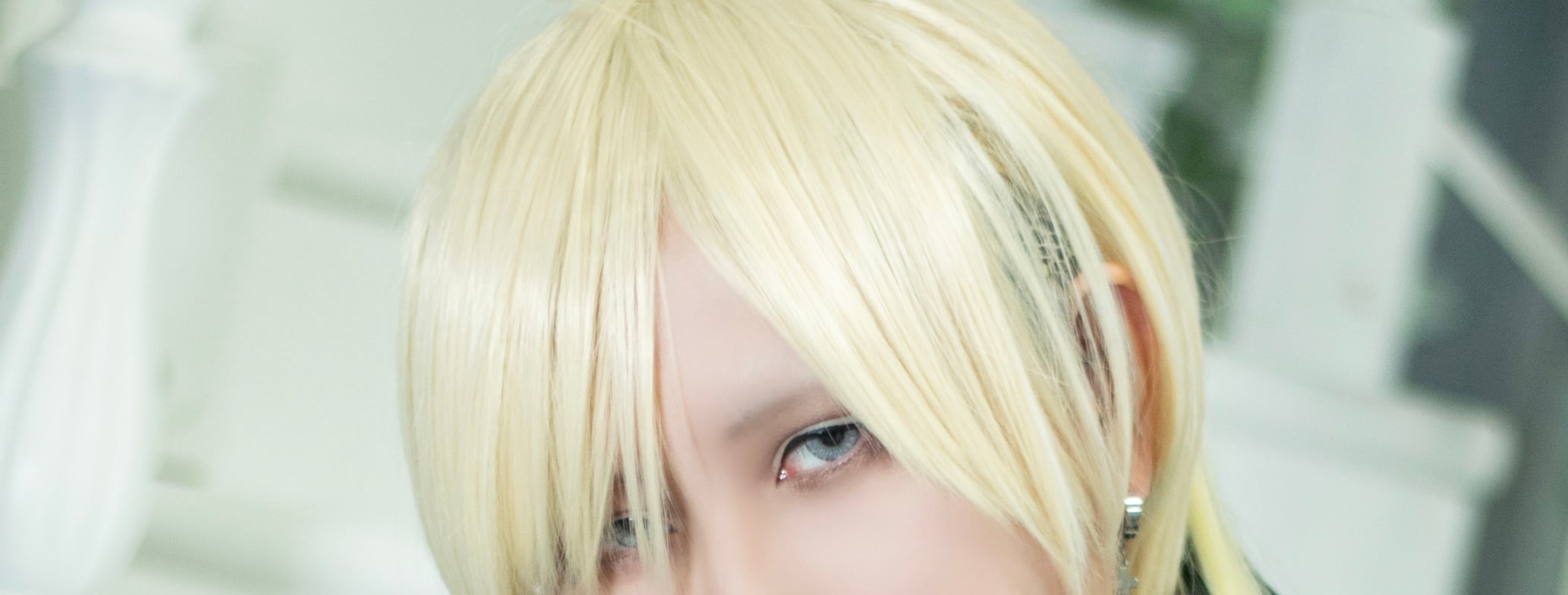 イメージ▶金髪、長髪、目隠し、手袋、杖